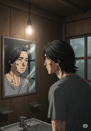 数週間後、一郎は自分の身体が悲鳴を上げているのを感じていました。土を耕しても、すぐに雑草が芽を出し、自然は彼の思い通りにはなりません。彼は洗面所の小さな鏡を覗き込みました。日焼けし、泥に汚れた男の顔は、かつてのスマートな会社員の面影を失っていました。「私は何のためにここにいるのか?」その問いに答える者は、夜の静寂以外に誰もいませんでした。