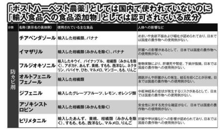 つまり、本来は「農薬」であるものが、輸入食品の「食品添加物」として扱われることにより、規制をすり抜けるというわけだ。