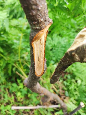 こっちは幹から枝が二股に分かれている個所が引き裂かれています。