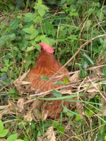ふと、足元を見たら。。。。ニワトリが座っていたんです!