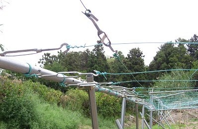 次に2本目、3本目と張っていくうち、ふと。。前に張った線を見るとだらーっと弛んでしまっています。ターンバックルがあるから後で調整しようと更に線を張っていくと前に増して弛みがひどくなっていきます。