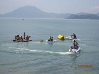 ご覧のように、ジェットスキーやバナナボート、シーカヤック等でマリンスポーツを楽しみました。お昼は皆でバーベキューです。