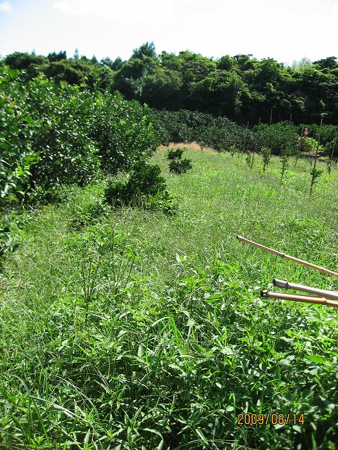 草の中にポツポツとミカンの樹が浮かんでいます。