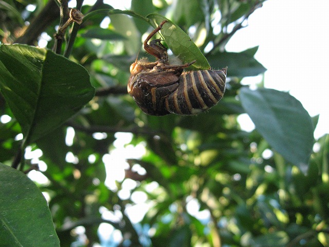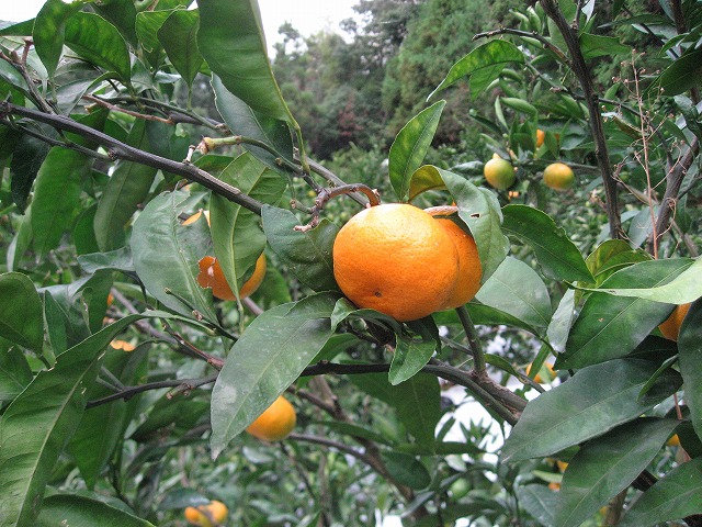 みかんの汁を吸いに来るカメムシ等の虫を捕まえて欲しいので、なるべく巣を壊さないようにしています。
