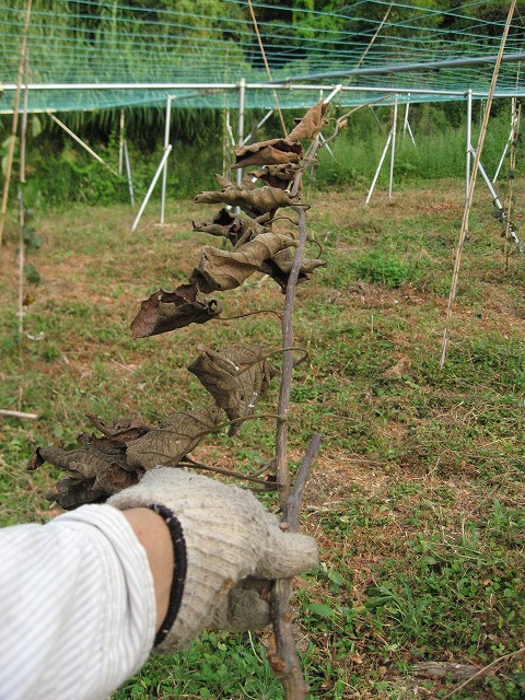 今日はソルゴーを植えてある畑の“まりひめ”という品種の枝吊りをしました。