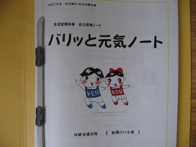 すると、私の腹囲が85.8cmで、85cm以上あるので“メタボリックシンドローム”に該当するとのことで、食生活や運動についての指導を受け、写真のような“バリッと元気ノート”なるファイル(何でバリッとなのか?分かりませんが。。。。)を渡され、毎日の食生活や腹筋運動の記録をつけるようにとの事でした。