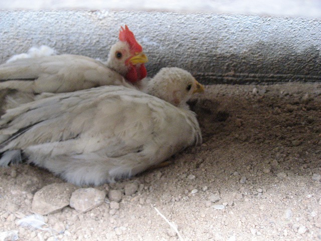 庭の柔かい土の所に行って、足で砂を体に掻き揚げたり、