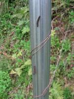 なんと!キウイ棚を支えている単管パイプを登っている奴がいます。
