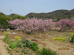 畑の桃の花も