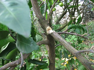 みかんも今年は成ってないんです。その少ないみかんをやられる