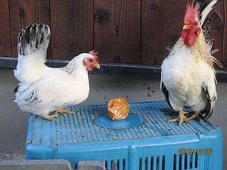 ミカンを置くとピー助君、我先にと食べ始めたので、ピーちゃんが“私が