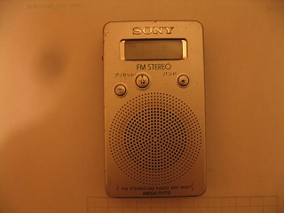 一人の時は写真の小型のラジオを胸ポケットに入れて聴いています。