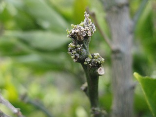 みかんの木も春が近いことを感じているのでしょう。枝先に小さな