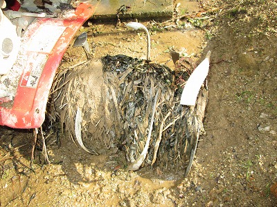 海藻を畑にまんべんなく敷いて、いざ!管理機で鋤き込もうとやり始めたら