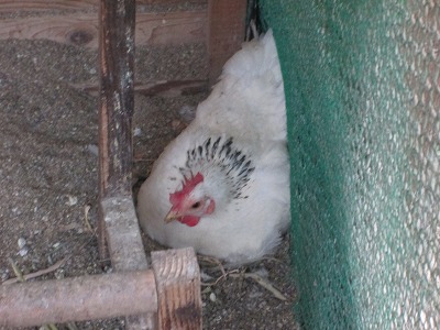 さて、我が家の鶏小屋では雌鶏たちがみんな集まって座り込んでいます。
