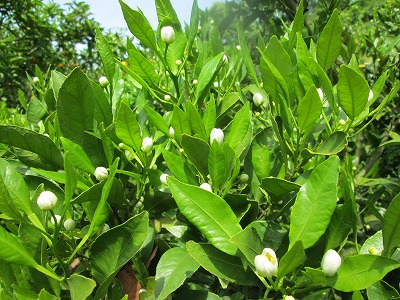 この時期の畑はみかんの花の香りに包まれて、これこそ自然の中での