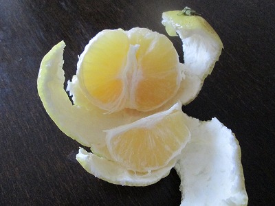 あまり美味しそうには見えなかったのですが、皮を剥いて見ると温州みかんの