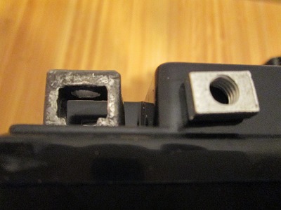 写真の右に写っているナット?を立てにして左の穴に挿し込まなければなら
