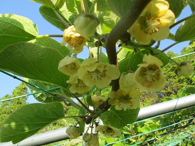 キウイの開花が始まり、昨日から受粉作業をしています。