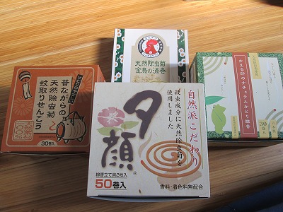 試しに除虫菊を使っている蚊取り線香を4種類買ってみたのですが、どれもみな、