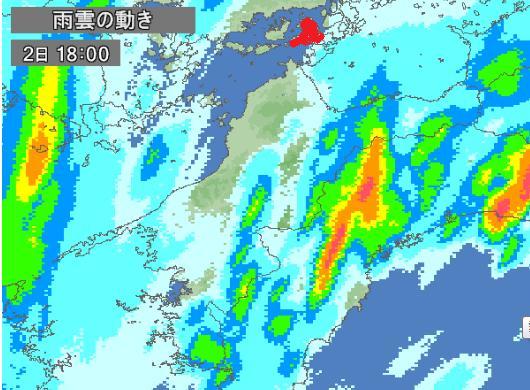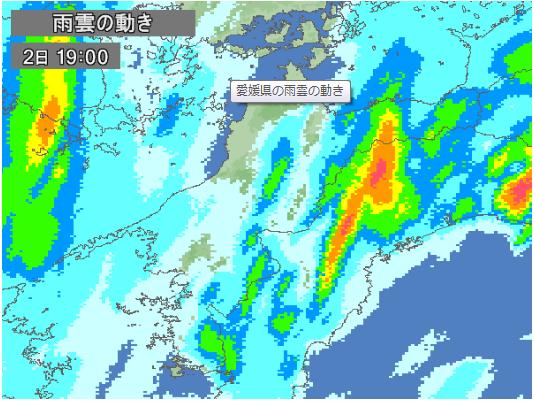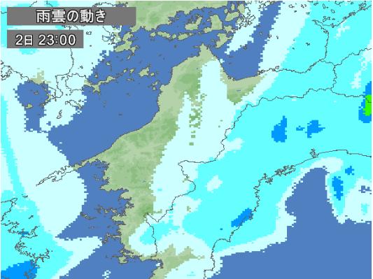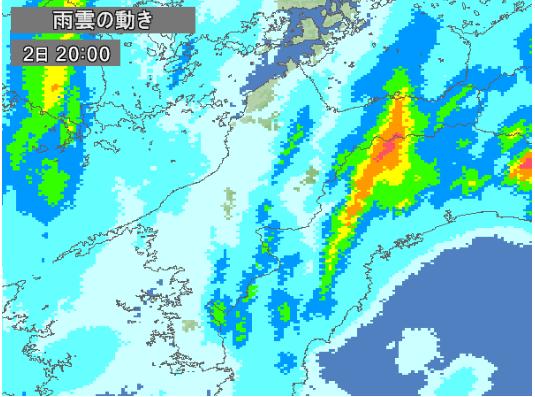 それでは警報が出ていた2日の夜の1時間毎の雨雲の動きを見てみましょう。