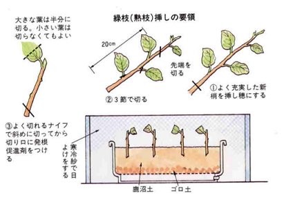 ,通常10cmくらいの枝を下図のように土に挿して大きくして、1年後に畑に