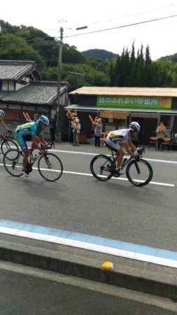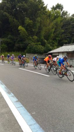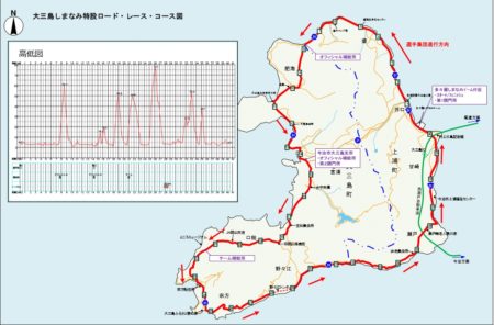 コースは大三島をぐるっと囲む起伏の激しい県道を閉鎖して行われました。レースはこの周回コースを3周(121.2km)することで競われました。