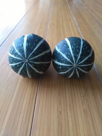 ご覧ください!とっても可愛らしいツートンのカボチャが