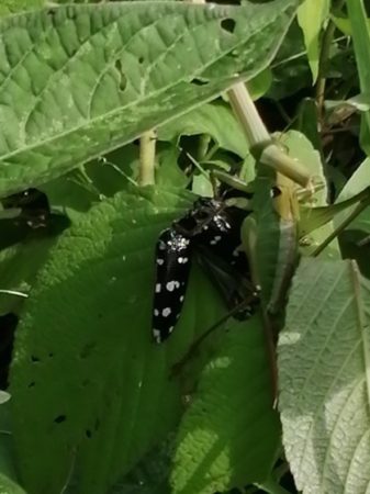 地面に羽を広げた状態でカミキリムシがいたのです。