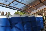 10本まるまる溜まれば2トンの水になります。ただ、現状の屋根は2m×4mの8?しかなく、雨が降ってもあまり溜まりません。屋根をもう少し長く作る必要がありそうです。