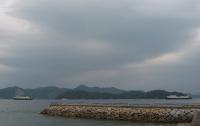 キウイ畑の沖に、大きな船が2隻もう2か月以上停泊しています。