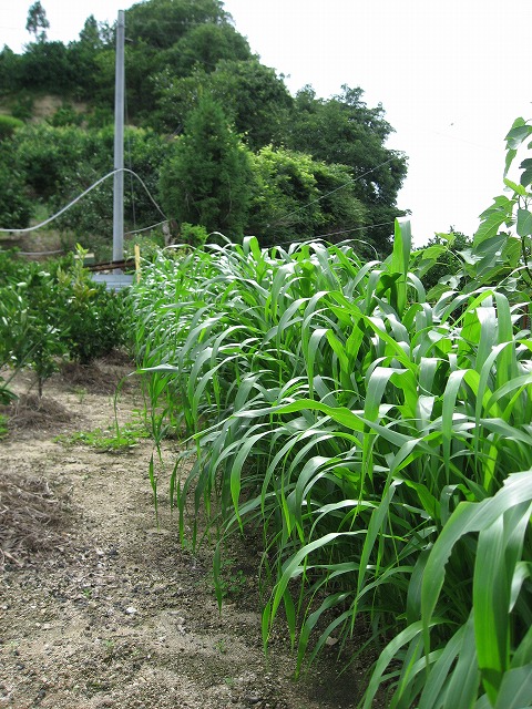 ソルゴーは緑肥として使えるので、暴風垣の役目が終わったら畑にまいて肥料になります。有用な植物です。
