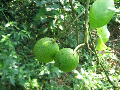 グリーンレモン 投稿日時: 2010-10-07 投稿者: 洋柑 グリーンレモンの収穫時期が近づいて来ました。 今年から“農薬不使用”・“化学肥料不使用(微量要素肥料を除く)で 栽培したのですが、“かいよう病”にもやられず、割ときれいに出来ました。 もちろん病害虫にやられた実もありますが、内心どんなになっちゃうのか 心配でした。 “天恵緑汁”と“漢方薬”が効いたのでしょう。発酵液を作った甲斐が ありました。 レモンは皮ごと使うことが多いので安全なものが良いと思います。 レモンは癌の抑制に効果があるそうですよ。 Related posts: 自然農業 やってみます。 ソルゴーを蒔きました。 極早生みかんが “絵描き虫”にやられちまったんです。