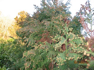 ズラーっと杉の防風林が植えてあって、風が吹くと花粉がシャワー
