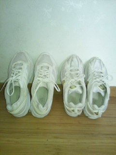 足もいつの間にやら大きくなって僕より大きい靴を履いてます。(右が私の靴)