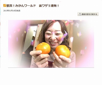 歓喜!みかんワールド 投稿日時: 2013-01-16 投稿者: 洋柑 本日の“ためしてガッテン”は みかん でした。 画像をクリックしてHPで内容をご確認下さい。 [emoji:e-180]甘いみかんを見分けるワザ [emoji:e-181]甘いみかんに変えちゃうワザ [emoji:e-182]魅惑!みかんに一目ぼれしちゃうワザ?! Related posts: “レモンらしさ”って何?