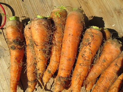 なっていますが、同時期に植えた普通の人参は、ご覧のとおり一個として