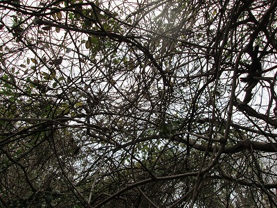 今回の山はご覧のように“蔓地獄!”空一面に蔓が四方八方に巻き付いています。