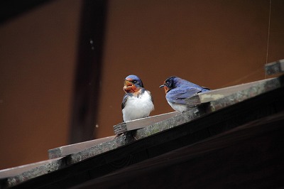 昨日、倉庫でジュースの出荷準備をしていたら、2匹の燕が入って来ました。