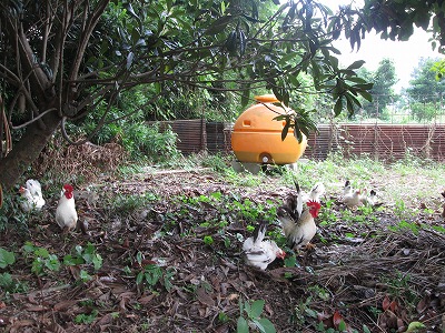 毎日、朝夕の2回散歩させて、草や虫を沢山食べてとても健康な鶏たちが産ん