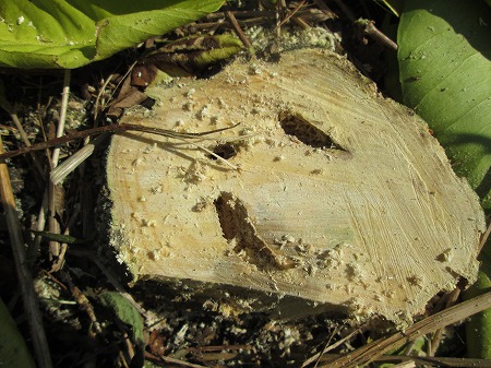ところが、株元をみても穴は空いていないし、地面から15cm位の所で