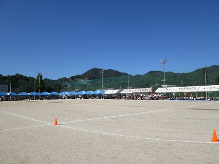 台風一過の快晴の空の下、一日遅れで小中学校合同運動会が開催されました。