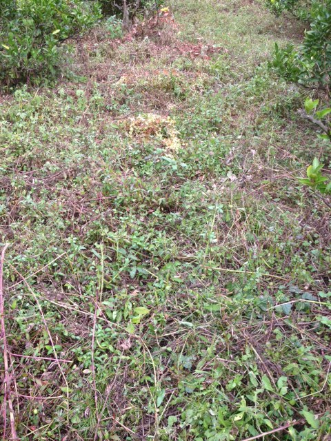 しているので、刈草が積もってかなりの有機物で地表面が覆われています。